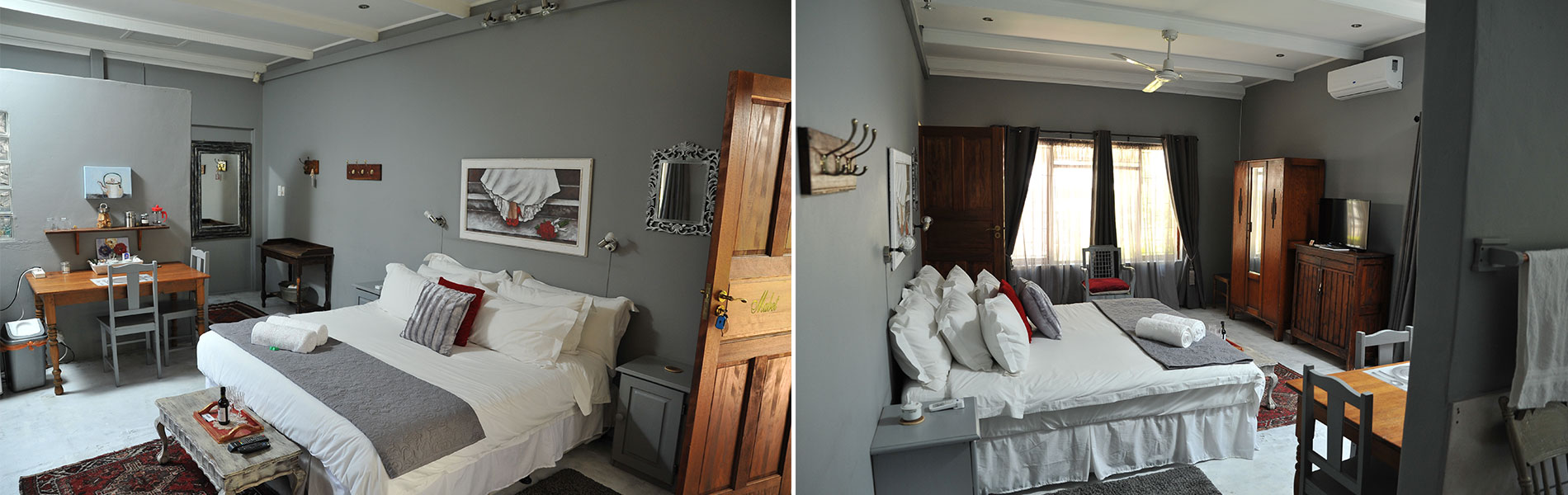 Mabet Room is tastefully decorated with its own private entrance. Furnished with a King-sized bed and en-suite bathroom with shower. The room also has air-conditioning, a microwave, bar-fridge, kettle, toaster, coffee and tea facilities, freshly baked rusks, full DSTV, safe undercover parking, behind a remote controlled gate and free wi-fi.